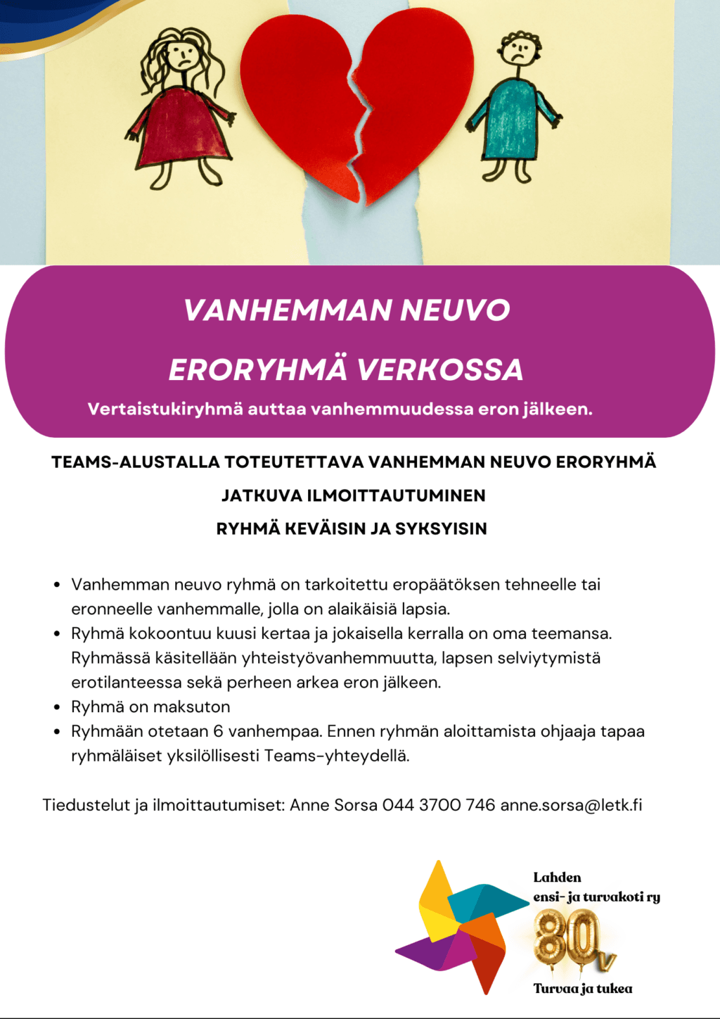 Tiedustelut ja ilmoittautumiset: kahdenkodinlapset@letk.fi tai Anne Sorsa 044 3700 746